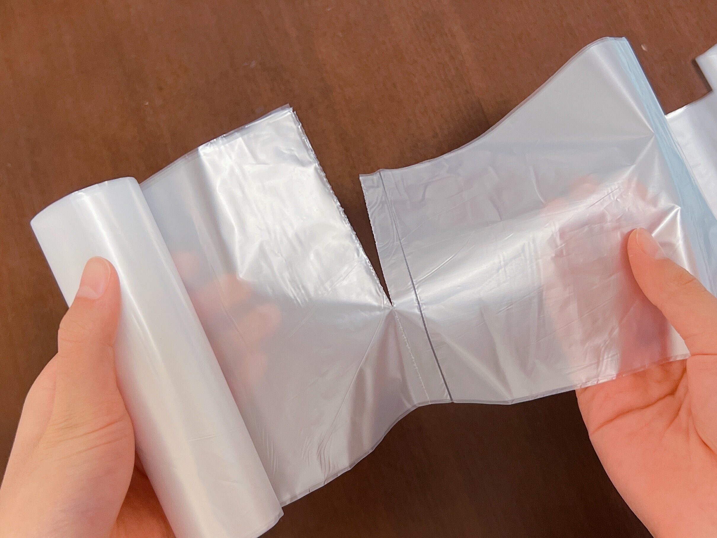 ロール状になっているゴミ袋にはミシン目が入っているので、1枚ずつ簡単に切り離せます。