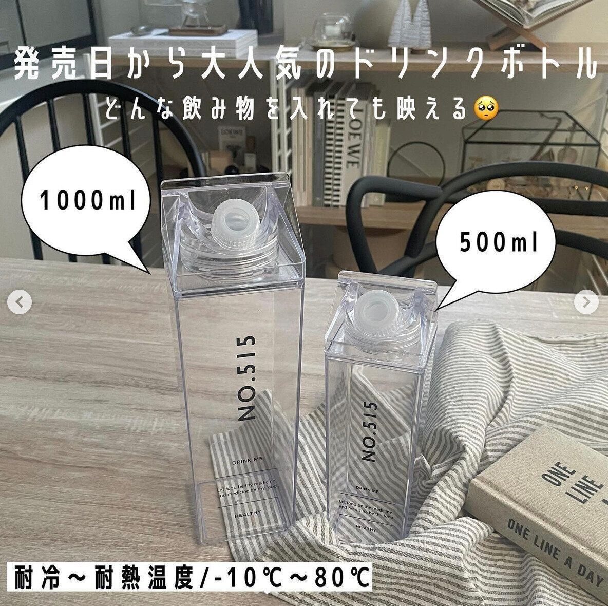 大人気で品薄になった商品。どんな飲み物を入れても映える、紙パック型のクリアなドリンクボトルです。上部が外せて見た目よりお手入れもしやすくなっています。キャップは回して外すことができるのでストローを差し込んでそのまま飲むことも可能!500mlと1,000mlがあります。