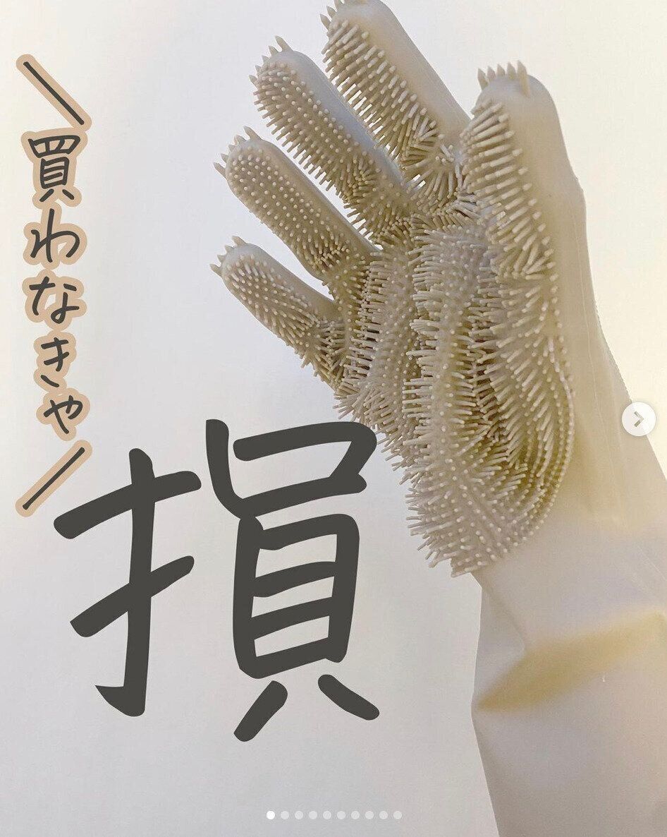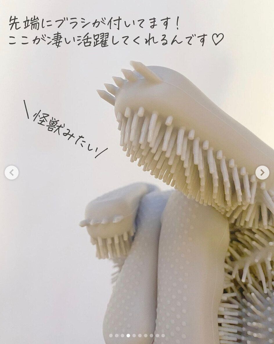 見た目はちょっと恐いかも…ですが、じつは以前から大人気商品のシリコンブラシ手袋です。お皿洗いで使うと、洗剤の泡立ちのよさに驚きます。自分の指を使って洗えるので、角までしっかり洗えるのもポイント。先端にも小さなブラシ部分があり、排水口の掃除も楽々です。ザブザブ洗って何度も使えるのもいいですね。