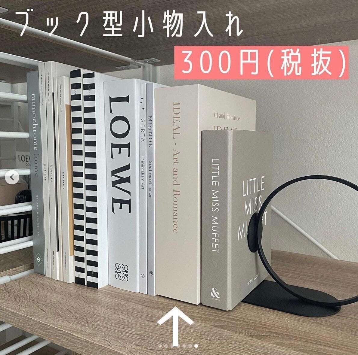 くすみ系インテリアにすっと馴染むブック型小物入れ。デスクやリビングのちょっとしたものを入れて隠しておくのに最適です。100均にもダミーブックはありますが、3COINSのものはサイズが大きくて、なによりおしゃれ!いろいろなデザインがあるのでぜひ店頭でお気に入りを探してみてください。