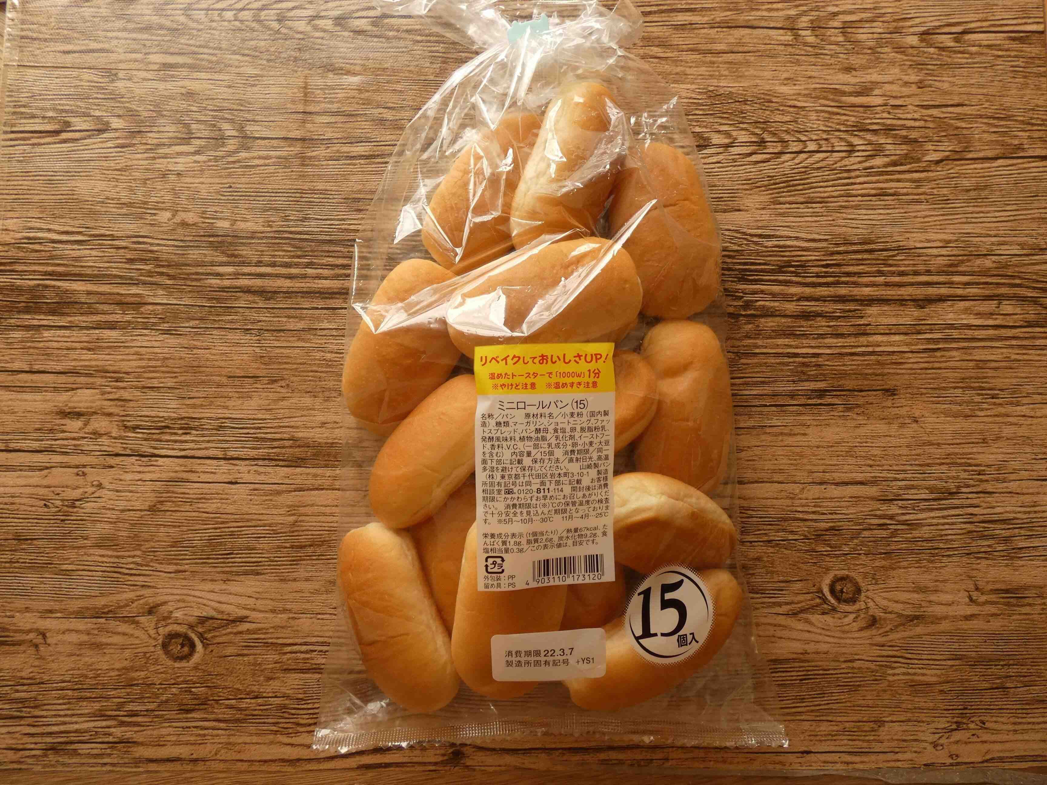 業務スーパー「ミニロールパン」は15個入り203円。1個14円なのでコスパ抜群です。