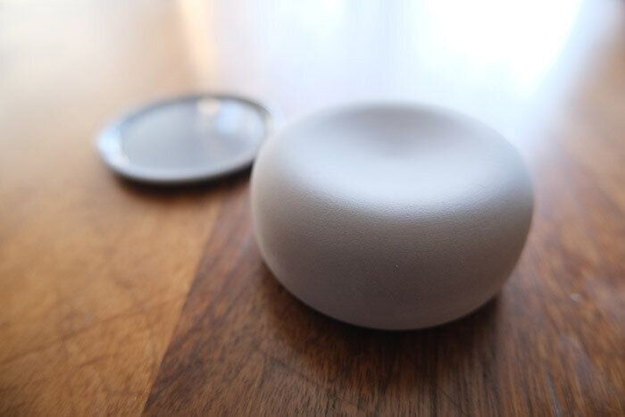 無印良品で発売されているアロマストーン!受け皿もついています。消費税込みで690円。手のひらにおさまるくらいのサイズです。ここに数滴、エッセンシャルオイルを垂らすという要領です。