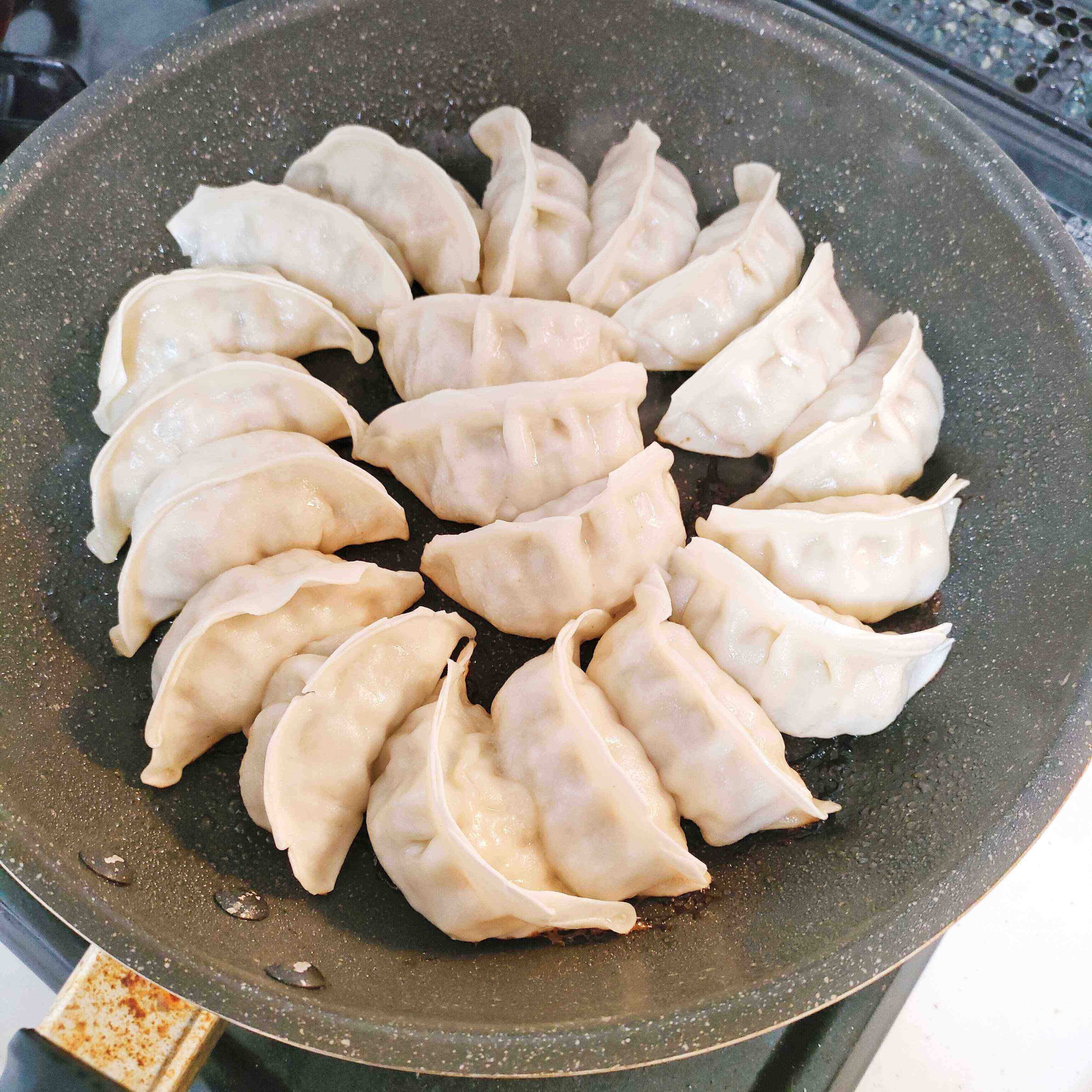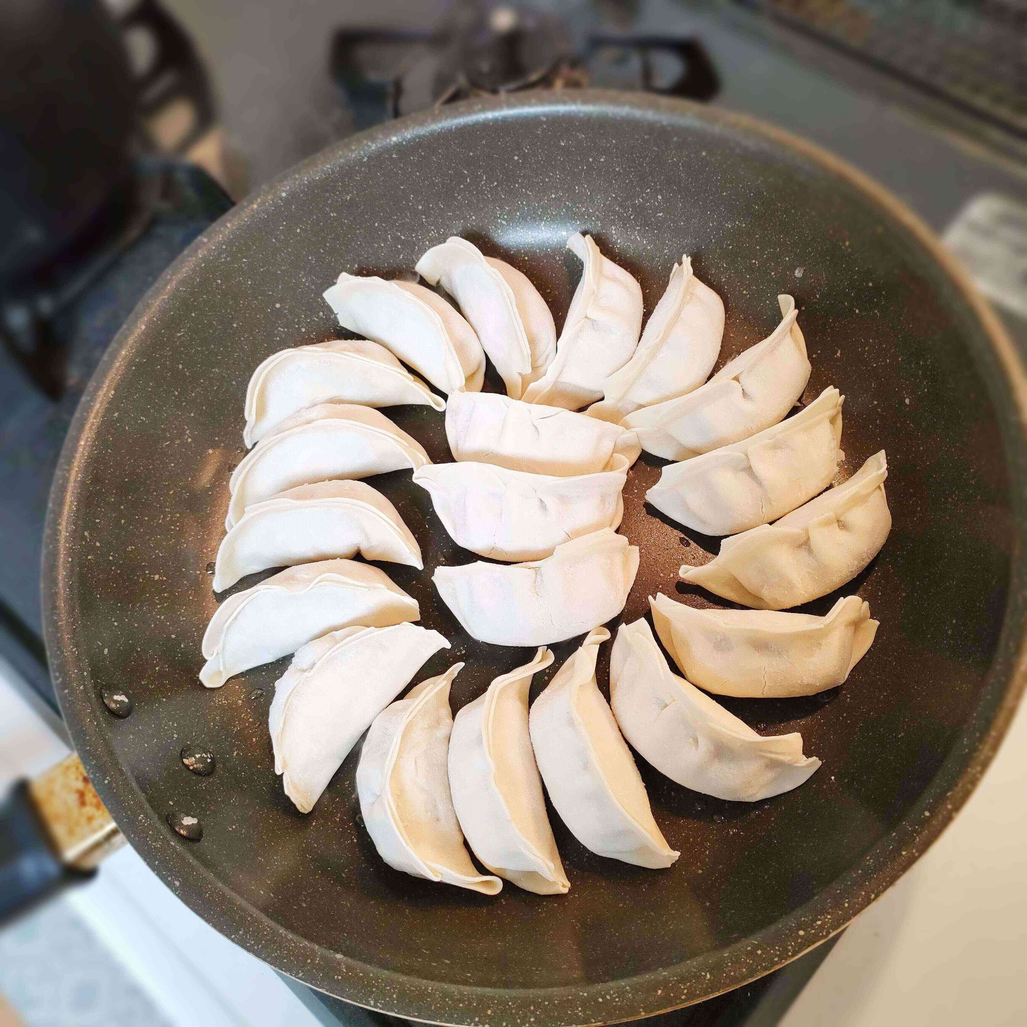 フライパンに好きな数の餃子を並べます。