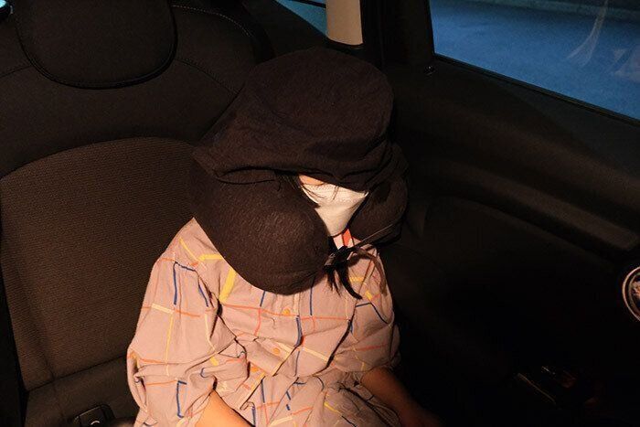娘は車内で寝ていることが多いのですが、ネッククッションは大好きです。無印良品のほかの種類のネッククッションも持っているのですが、それとはまた違った素材感のこちらもたいへんお気に召した模様です。