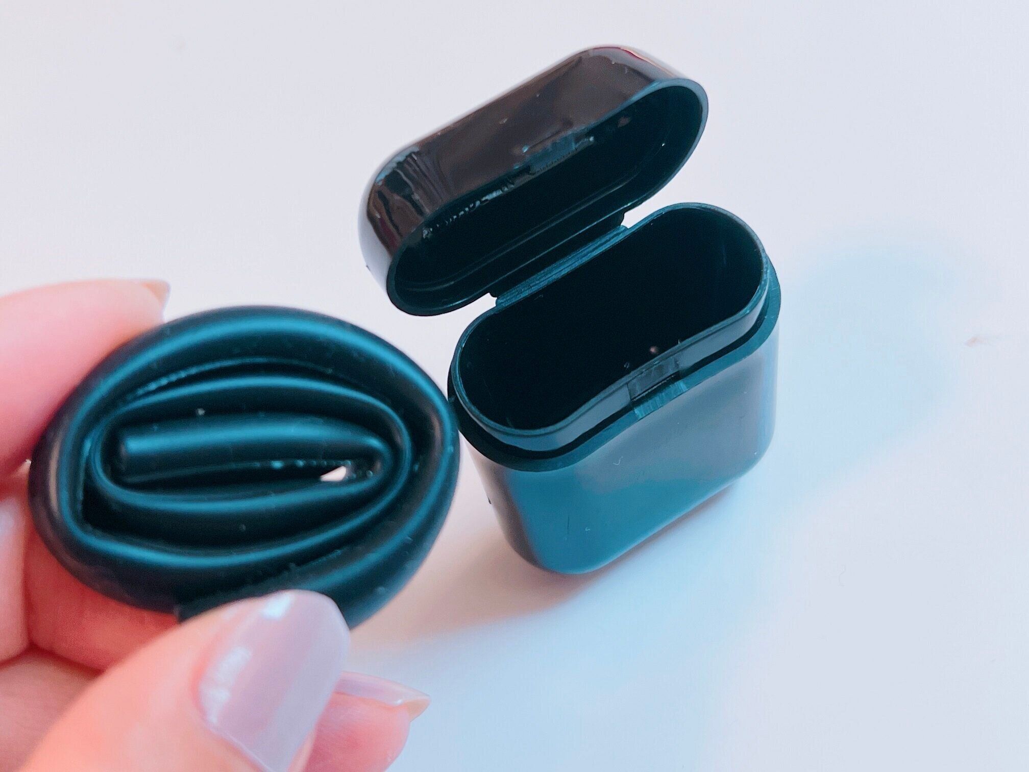 丸めてケースに入れると、手のひらにすっぽり収まるくらいコンパクトになっちゃいます!バッグの内ポケットやポーチに入れても邪魔しません。ちなみにストローは長さ約18.5cm、内径5mmあるので実用面でももちろん問題ありません。