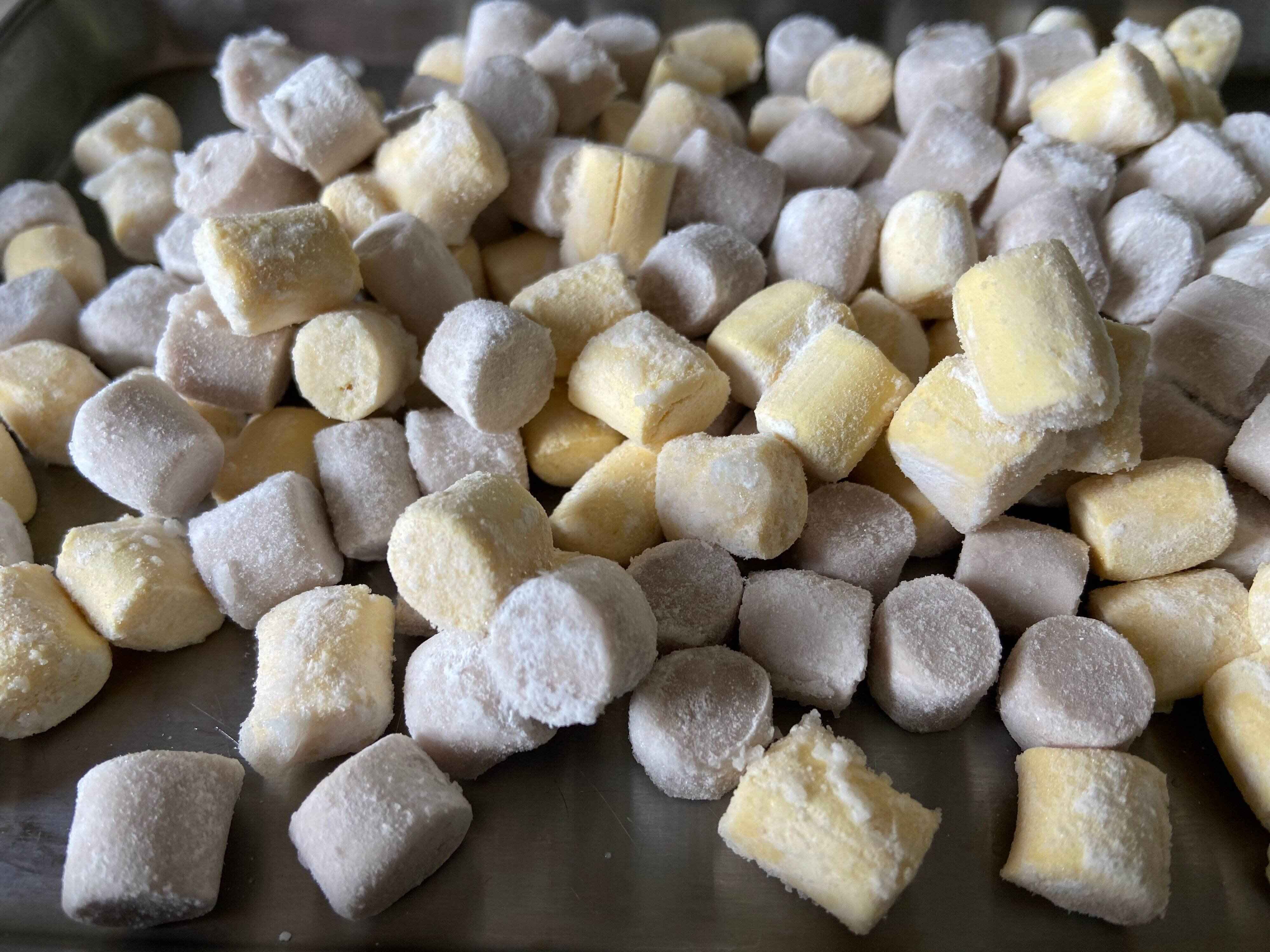 袋から出してみるとミニサイズの冷凍「芋圓」が。黄色と紫の2色で、たっぷり300g入り。本場台湾直輸入の商品です。
