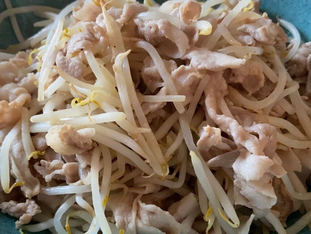 もやしと一緒に炒めて味つけは塩コショウのみ、シンプルな肉野菜炒めは筆者の家族にも大好評。豚バラの脂の甘みと肉の旨みでもやしがたっぷり食べられます。