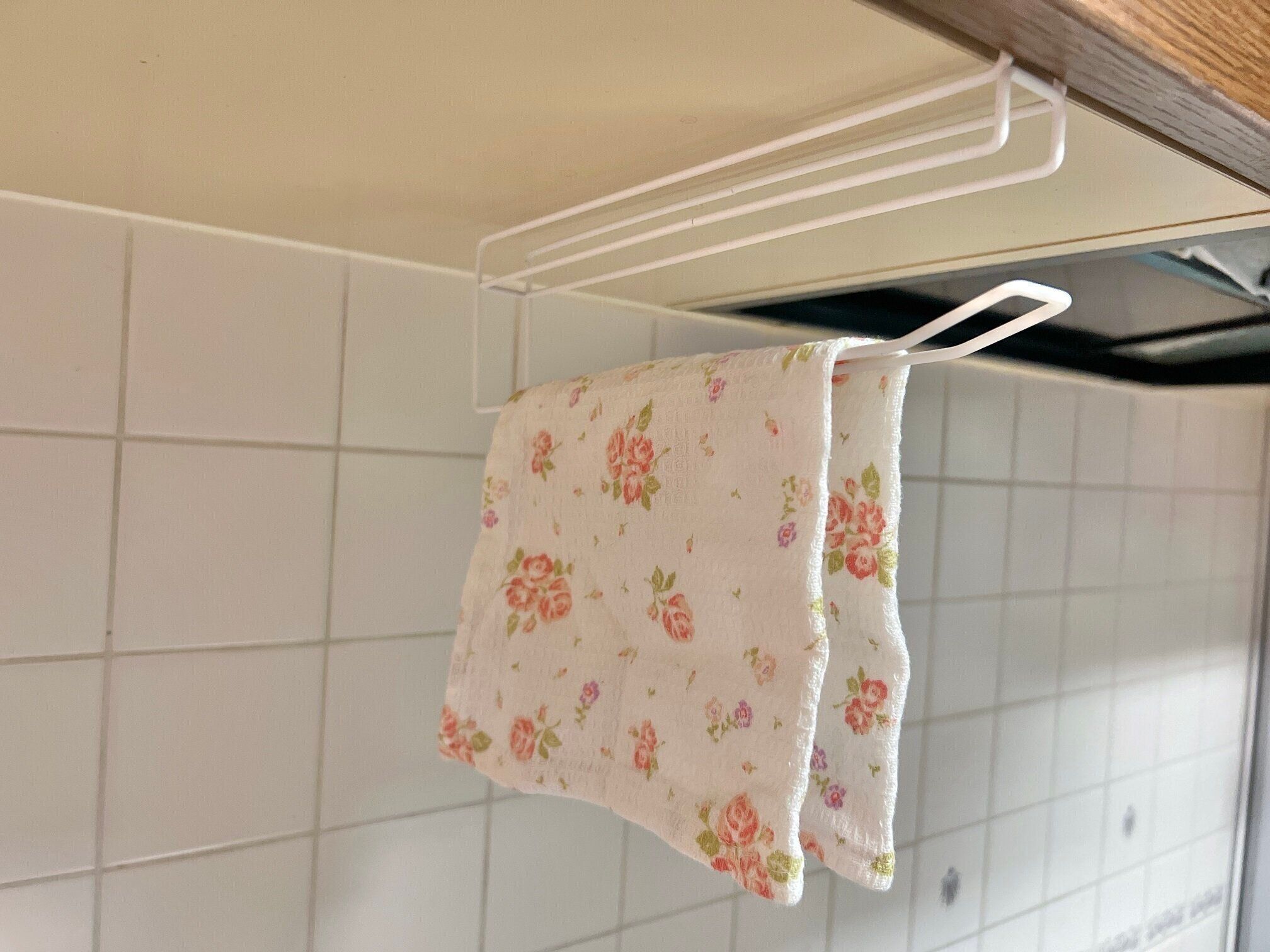 キッチンペーパーはもちろん、ふきん掛けとしても使えます。先が少し曲がっていて、キッチンペーパーが外れにくい形になっています。