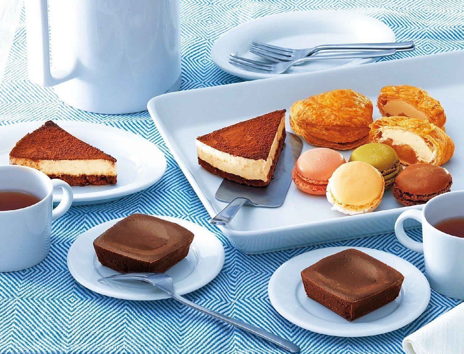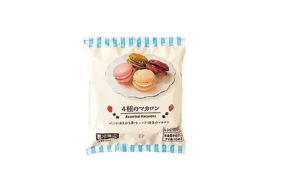 バニラ、あまおう苺、ショコラ、抹茶の4種で、カラフルな見た目も◎。マカロン独特のサクサク感としっとりクリームが味わえます。
