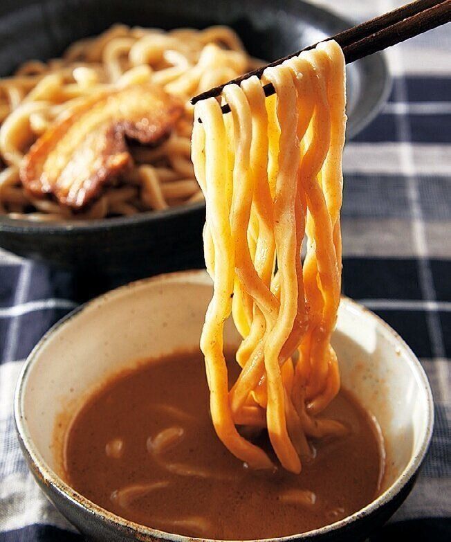 小麦の風味が強いもっちり太麺を、完全再現。濃厚魚介豚骨スープとの相性抜群で、厚切りチャーシュー入り。量がたっぷりなので、満足度大。
