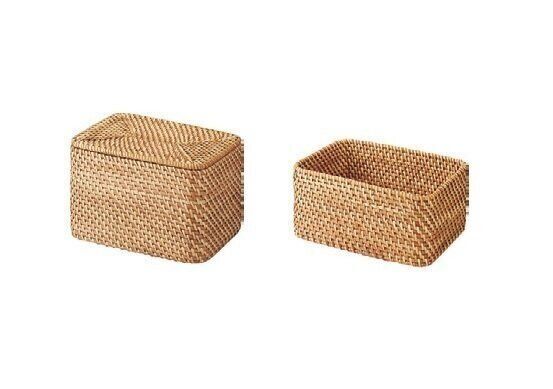 (右)「重なるラタン長方形ボックス・小」(約幅26×奥行き18×高さ12cm)¥1,890、