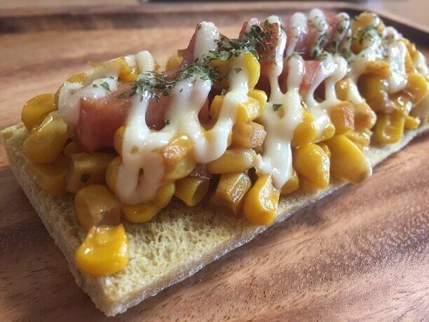 朝食時にも大活躍。パンにコーンとマヨネーズをのせてから、トースターで1分ほど加熱すれば、ぷりっとしたコーンとマヨネーズにパンの香ばしさが相性抜群です!小さいお子さんにはふんわり食パンで食べやすく、大人はバゲットにのせてお酒のおつまみとしてもぴったりですよ。