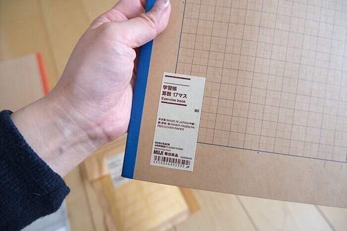 算数は低学年向けの横書きの6マスのものと、17マスのものがあります。こちらは算数らしい「青」い帯。素敵です!あとは5mm方眼の学習帳(帯は赤っぽい黒)のものや、自由帳などがあります。国語に関しては、漢字のノートも2種類販売されています。素敵!