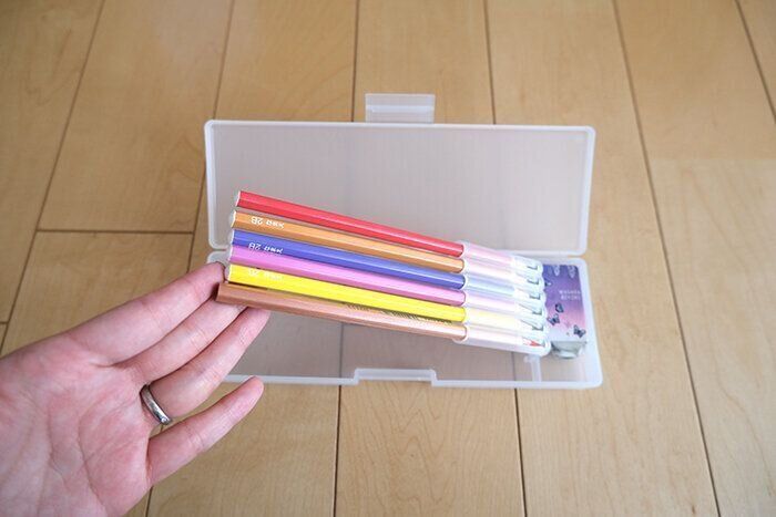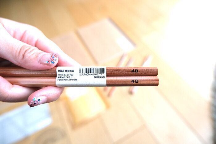 学校指定だと2Bが多いと思うのですが、低学年はまだ筆圧が低く、4Bくらいがちょうどいいな、と個人的に思っていました。そうしたら!でました!4B!無印良品の鉛筆のなにがいいかというと、ちゃんと角がついていて、転がって落ちていったりしないところです。これ、1年生なりたてだと、1時間ずっと落ちていく鉛筆を追いかけて終わりということもあるので、ほんとうに重要なんです…!