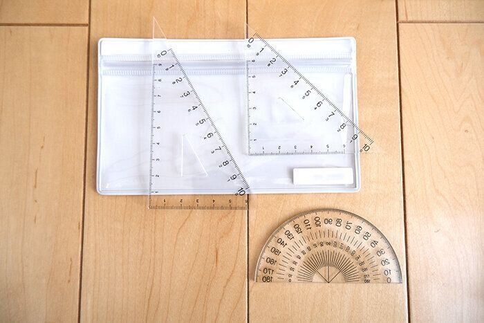 さまざまな分度器、三角定規が販売されていると思うのですが、シンプルイズグッド!!!きれいですね〜!これがまた。ちなみに片面クリアケースの小さいほうにちょうど全部入ります。素敵です。