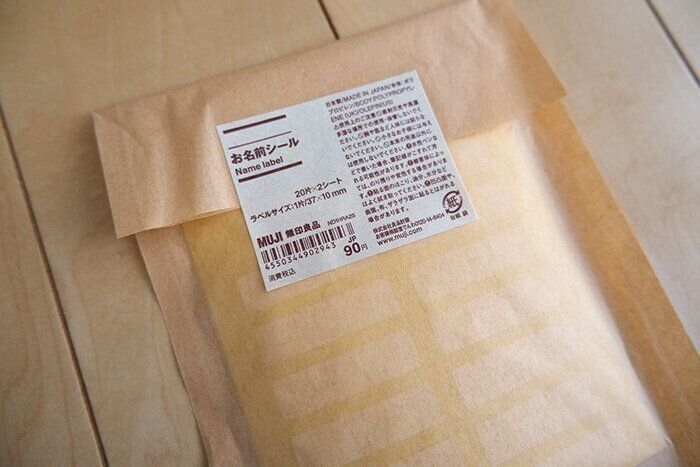 お名前シールはワンサイズですがほどよい大きさのものがたっぷりはいっています。90円。使い所はたいへん多そうです。
