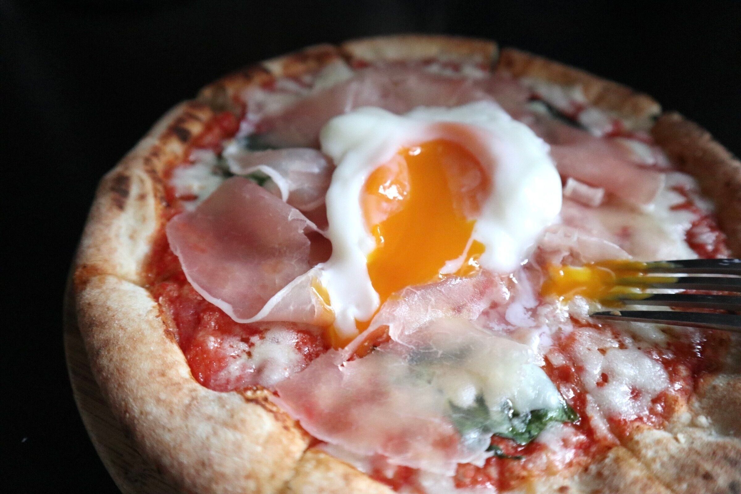 半熟卵と生ハムをトッピングするだけ!このちょとした工夫で、さらに「お店で食べている感」がアップ。食べるときは、半熟卵を崩してからいただきましょう。トロトロの半熟卵を浸して、食べるととろけるおいしさ!絶品ですよ。