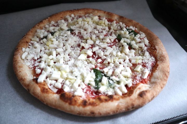 じつは、以前冷凍のままオーブンで焼き生地が固くなってしまったことがありとても後悔したのでです。さらに焼く前にコル二チョーネ(縁)に水を霧吹きすると生地がモチモチになりさらにおいしく食べられます。