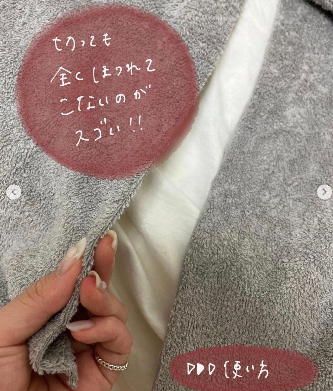 ほどよい厚みで吸水性の高いバスタオル。「その次があるバスタオル」という商品名のとおり、普通のバスタオルとして使った後、小さく切って別用途にも使うことができる商品です。長辺が3等分できるように線が入っており、ほつれずに切り分けることができます。切ったあとは、足拭きマットやフェイスタオルにちょうどいいサイズに。990円です。