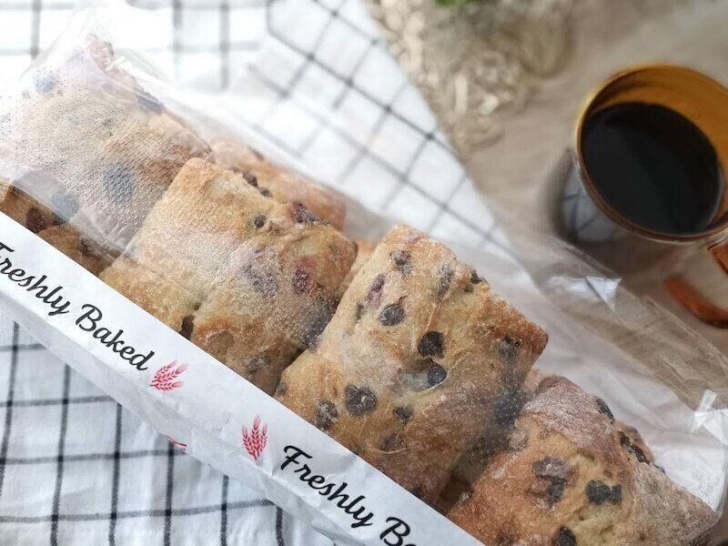 少し硬めの生地に、チョコチップ、クランベリーのドライフルーツが混ぜ込まれて焼き上げられている商品で、そのムギュッとしたおいしさにハマってしまいました。
