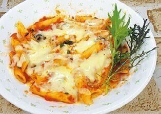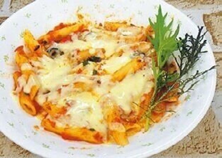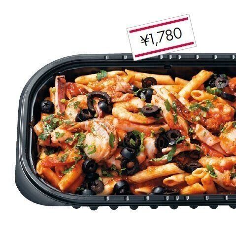 大きめシーフードを惜しみなく使用。濃厚なトマトソースに魚介のうまみがギュッと詰まったお店の味。「食材をそろえる費用や手間を考えると超お得!夕食にも大満足」(浜美さん)