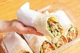 レタス、トマト、蒸し鶏、ハラペーニョなどのたっぷり具材をトルティーヤで包んだ物。サラダ感覚でヘルシーなのに満足感最強で、甘辛味が後引くおいしさ。10年以上のベストセラー。