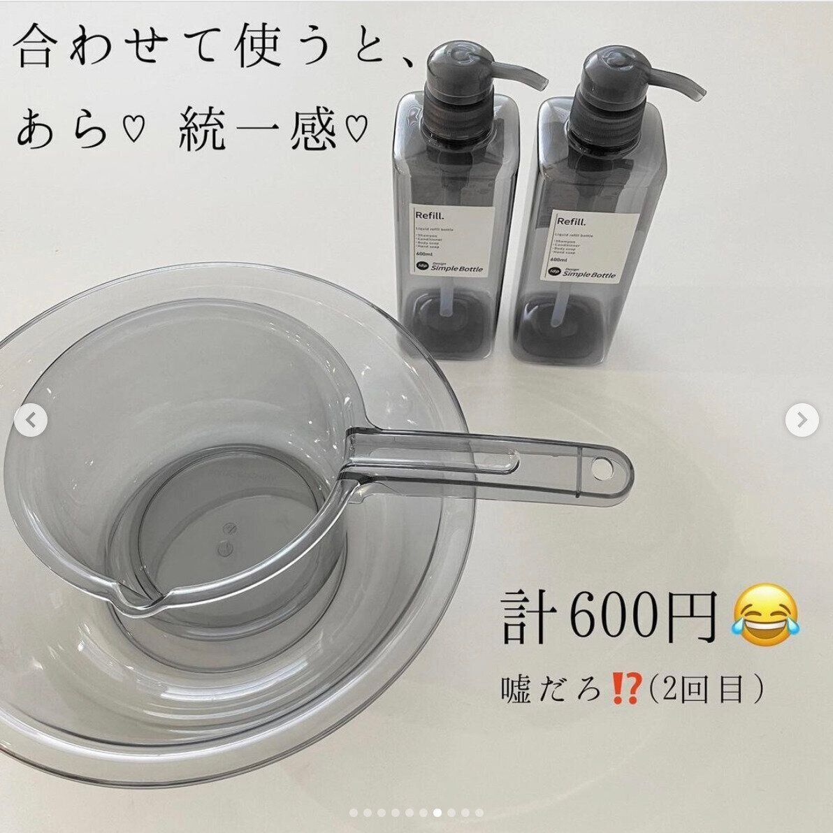 嘘だろ!?価格設定合ってる?と目を疑ってしまう商品です。人気のクリアカラーのバスグッズが数百円でそろえられちゃいます!シャンプーボトルは110円、洗面器と手桶は各220円です。クリアグレーなのがおしゃれですね!全部そろえたくなるシリーズです。