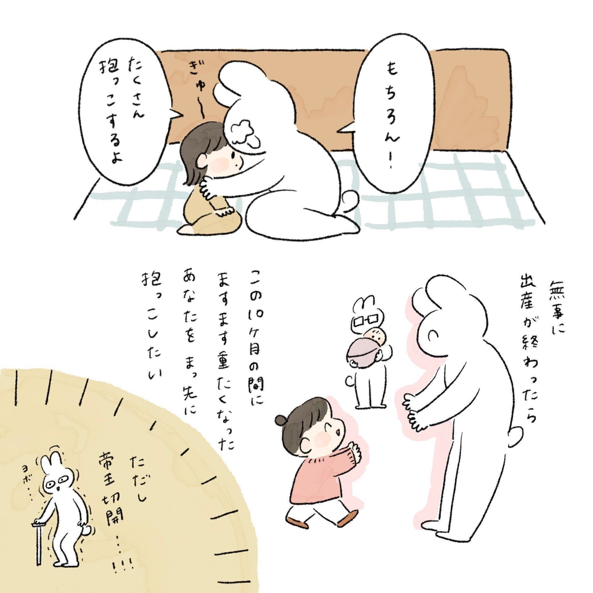 「妊娠初期に『抱っこはしばらくできないよ』と話してから、娘からこういった話をしてくることは一度もありませんでした。本当は抱っこしてほしかったのだとわかり、申し訳ない気持ちと、愛おしい気持ちになりました」
