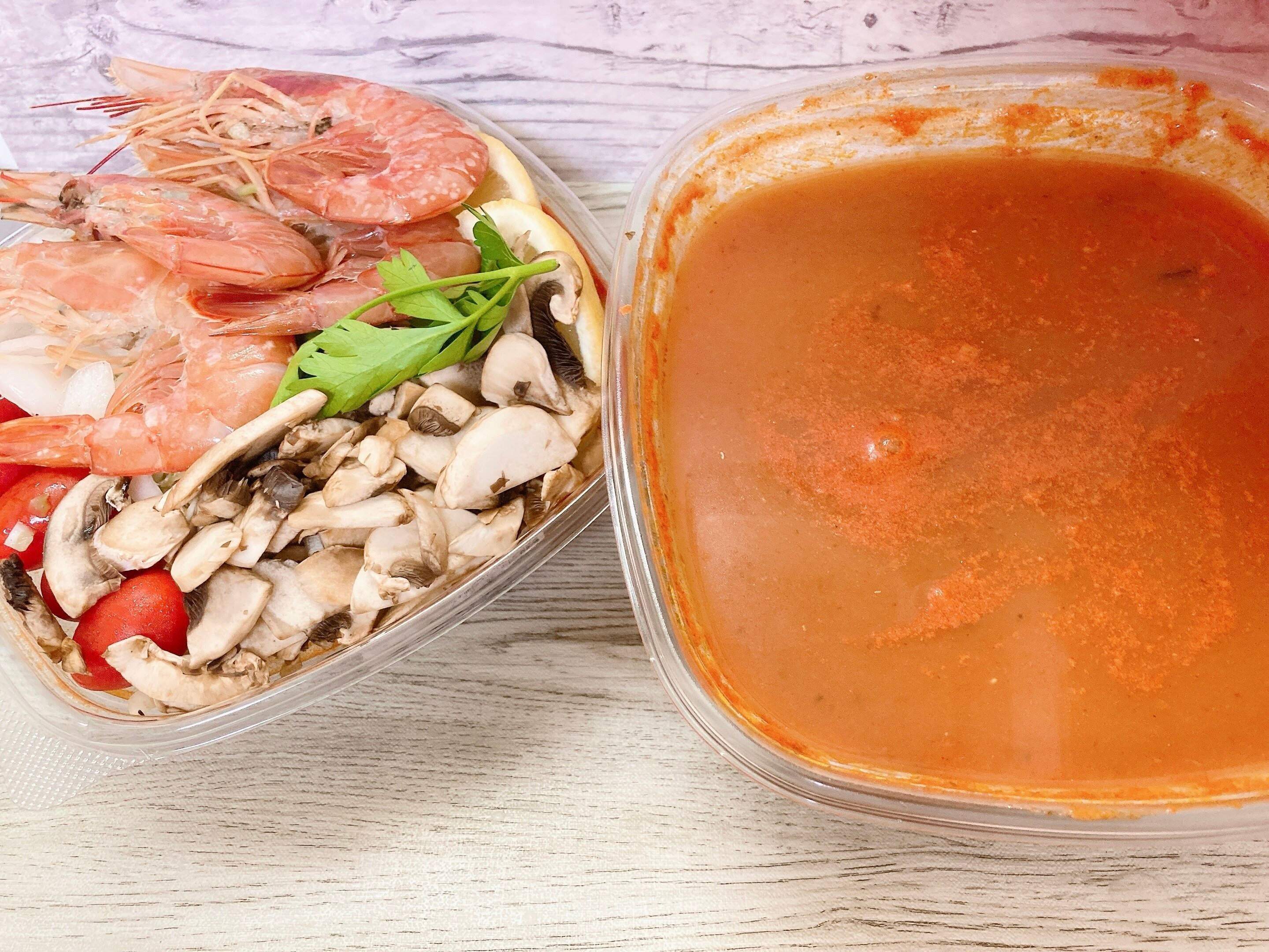 作り方はレモン以外の具材をすべて煮込み、海老に火が通れば完成!