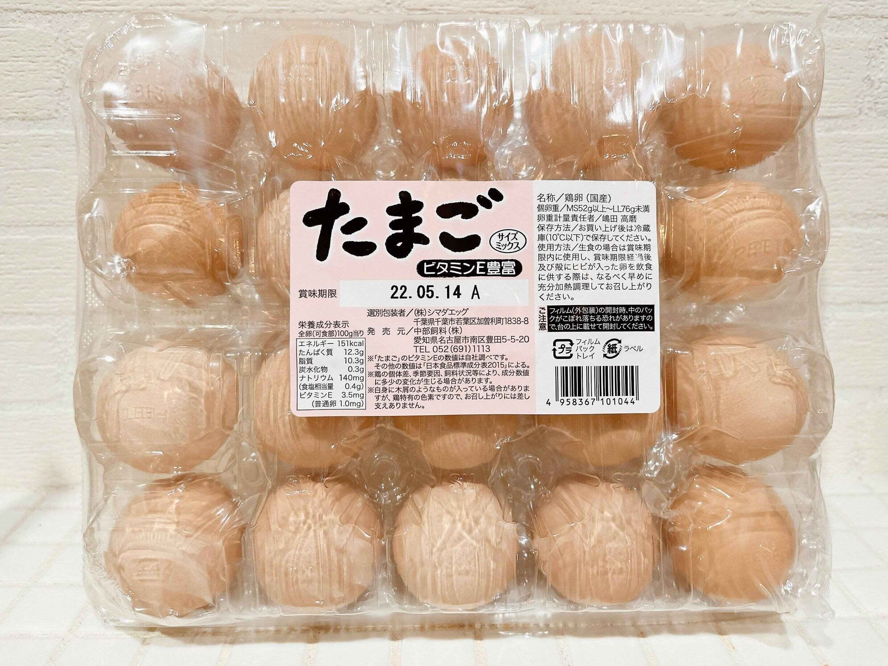 コストコのサイズミックス卵は10個入りパックが2つセットになっているので20個入りになります。