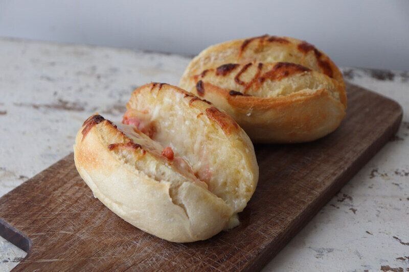 1.明太バラコと、マヨネーズを混ぜて、切込みを入れたパンに塗ります。