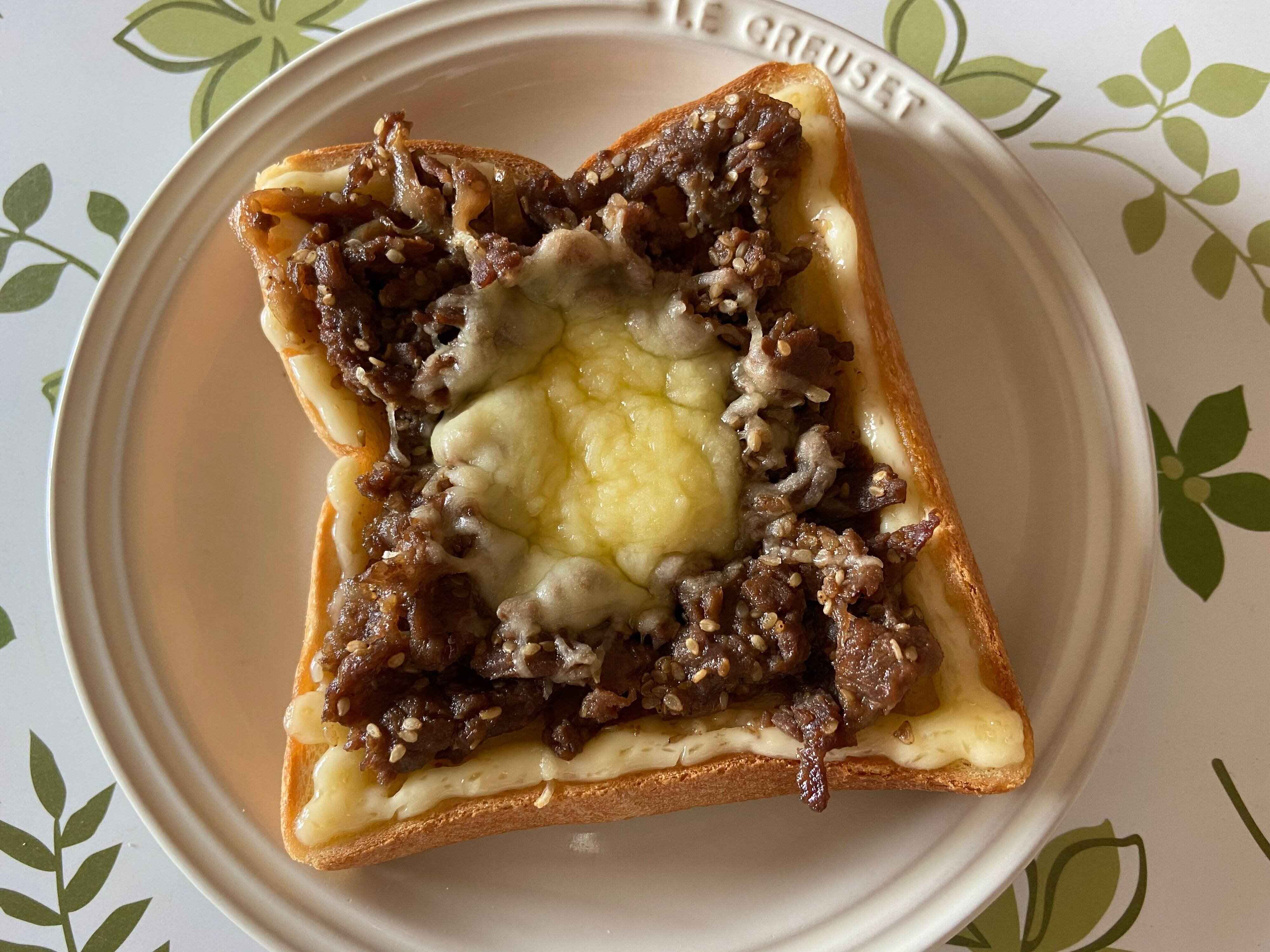 ご飯がすすむプルコギビーフ、ご飯だけじゃなくパンにも合うんです!食パンに炒めたプルコギビーフをのせてチーズもトッピング、お好みでマヨネーズをかけてトースターで3分ほど焼けば、ボリューム満点のおいしいプルコギトーストに。筆者は5枚切りの食パンをいつも使っています。しっかり味がついているお肉だから、味のバランスと食べやすさを考えて厚切りの食パンを合わせるのがおすすめ。食べ盛りの子どもたちにもとっても喜ばれる、ボリューム満点な一品です。