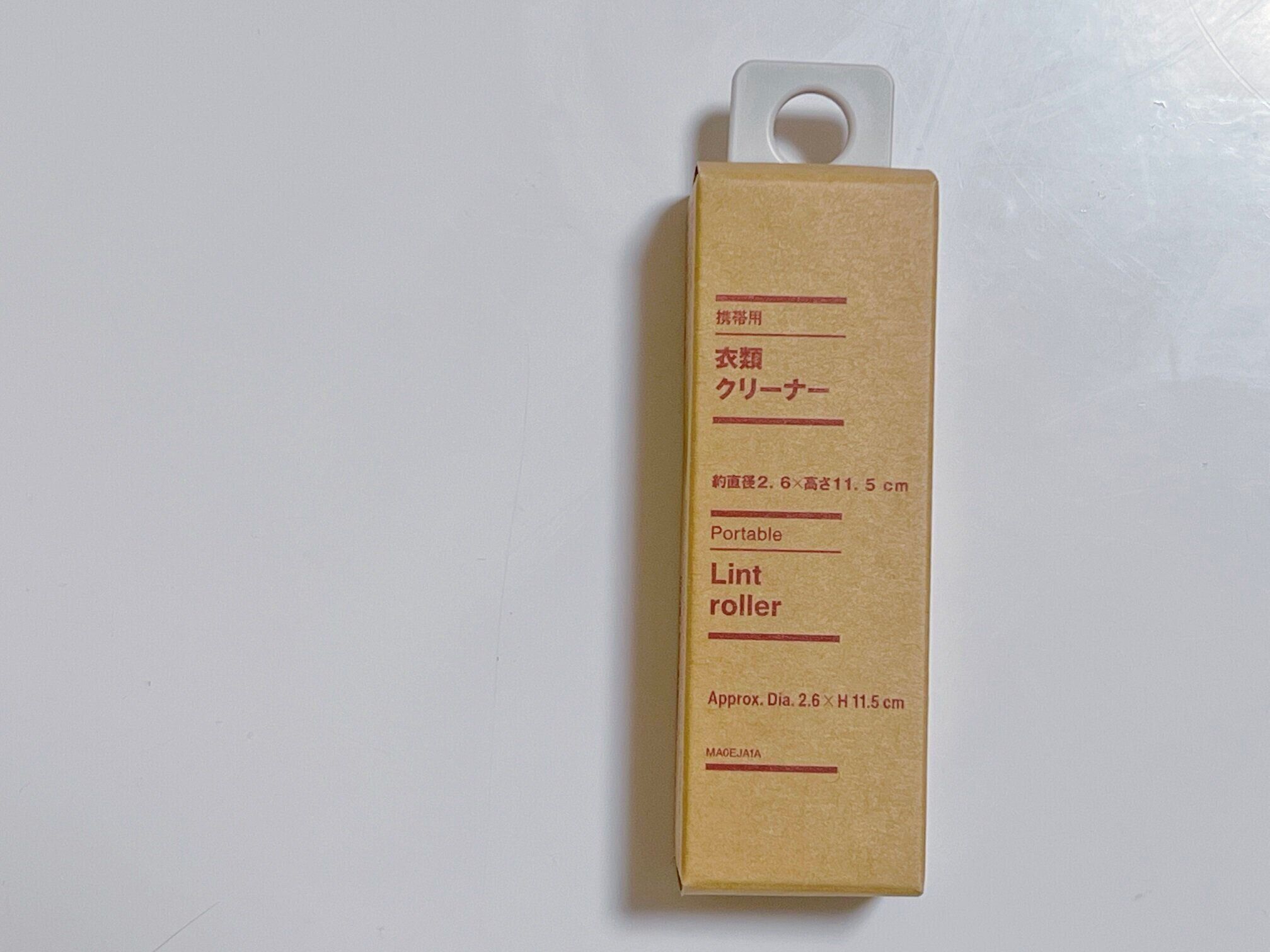 今回ご紹介するのは、無印良品の「携帯用衣類クリーナー」です。価格は390円。重量約40g、サイズは約直径2.6×高さ11.5cmと非常にコンパクト。箱に入っていますが、売り場では見つかりにくいほどのコンパクトさです!