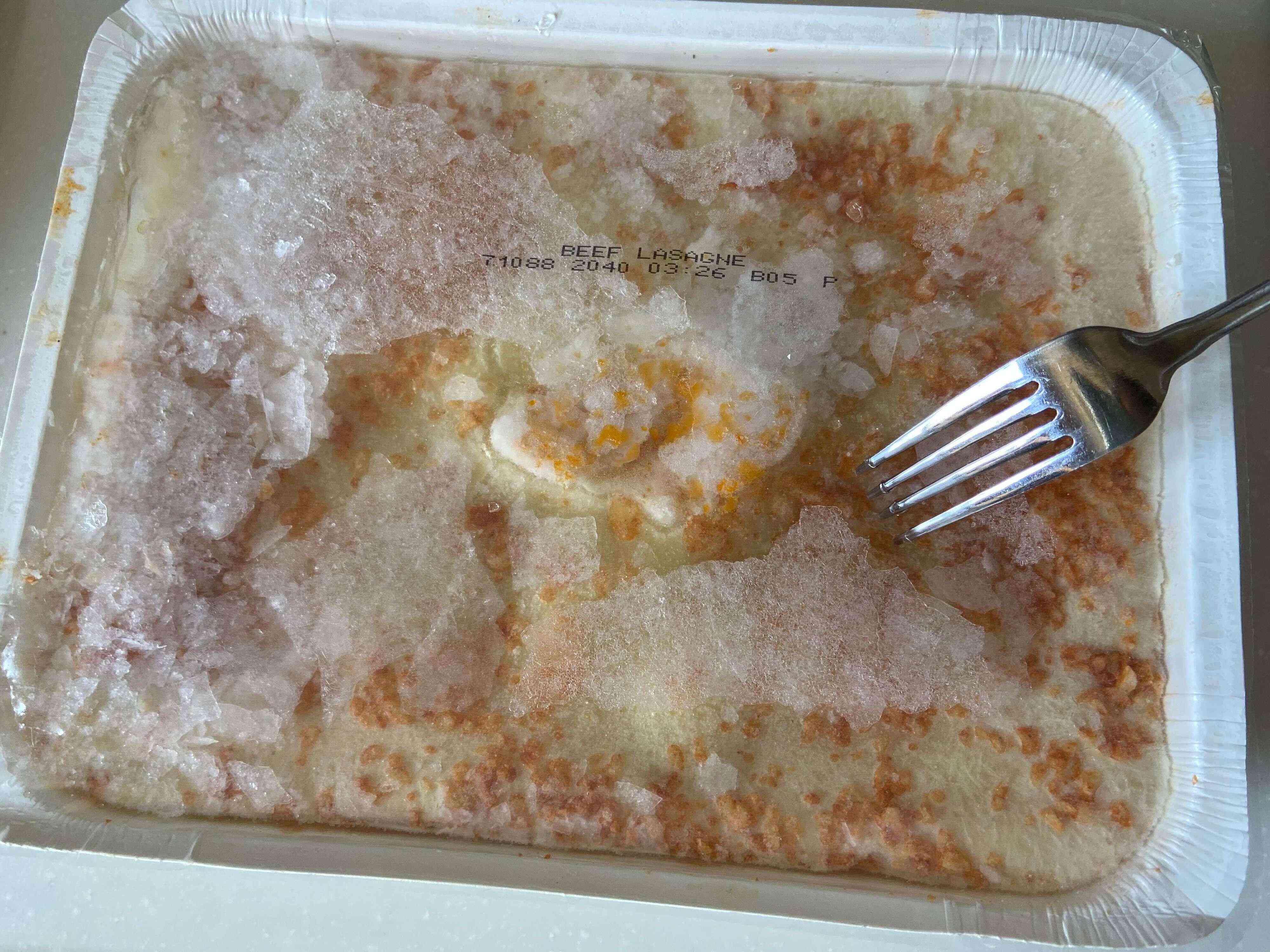 ラザニアの透明なフィルムを剥がす