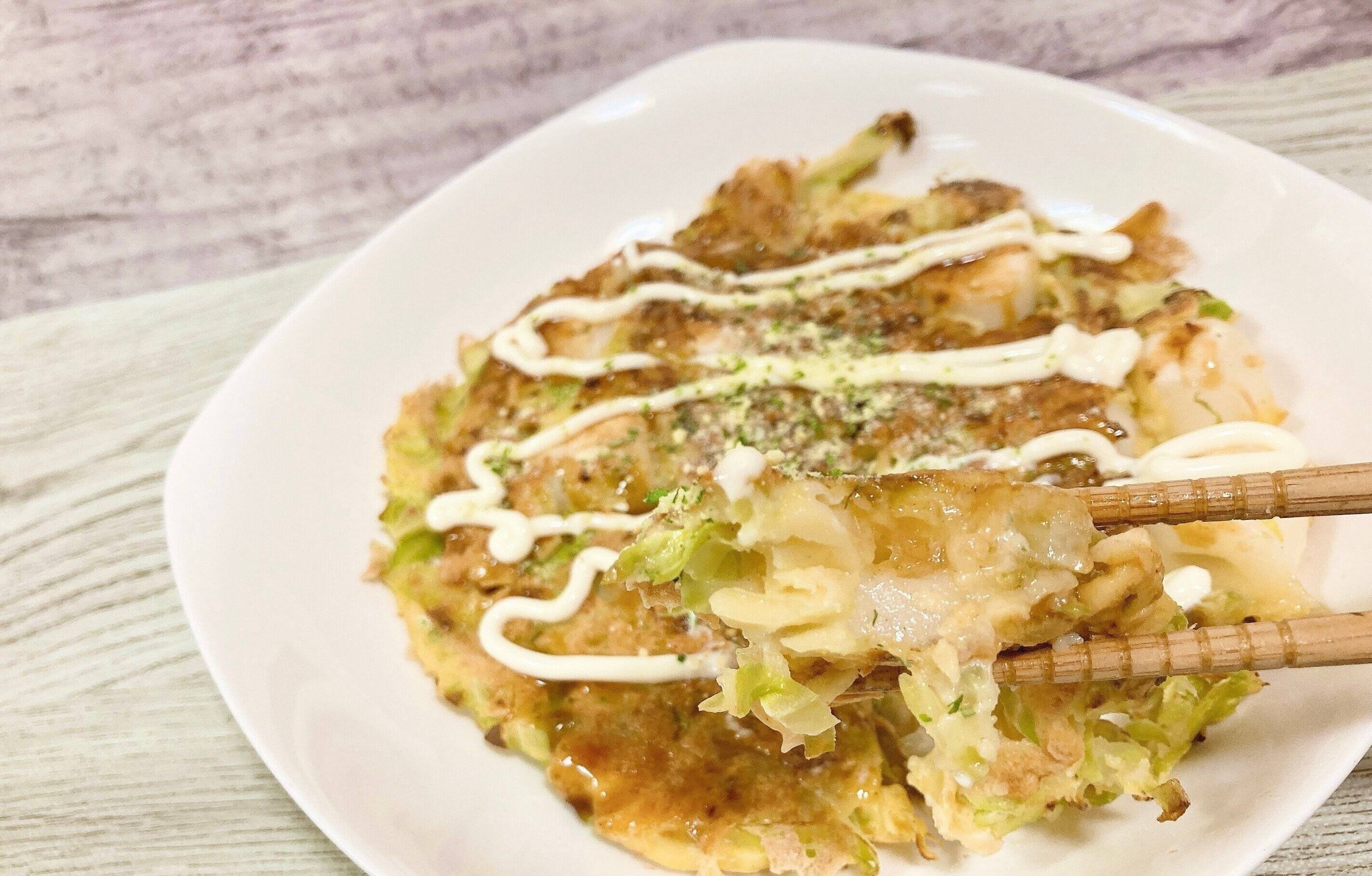 キャベツのシャキシャキした食感とトックのモチモチ感が楽しめ、お好み焼きのみでもお腹いっぱいになるボリュームのあるアレンジでした。
