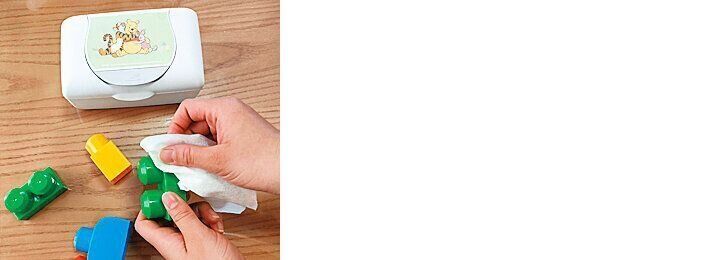 「子どもが口に入れがちなおもちゃやテーブル、手肌の汚れ落としがこの1枚でOKなのが助かります。デザインがかわいいので、子どもたちもお気に入り♪」