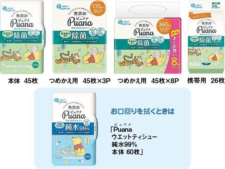 「Puana(ピュアナ)ウエットティシュー除菌ノンアルコールタイプ」ラインアップ