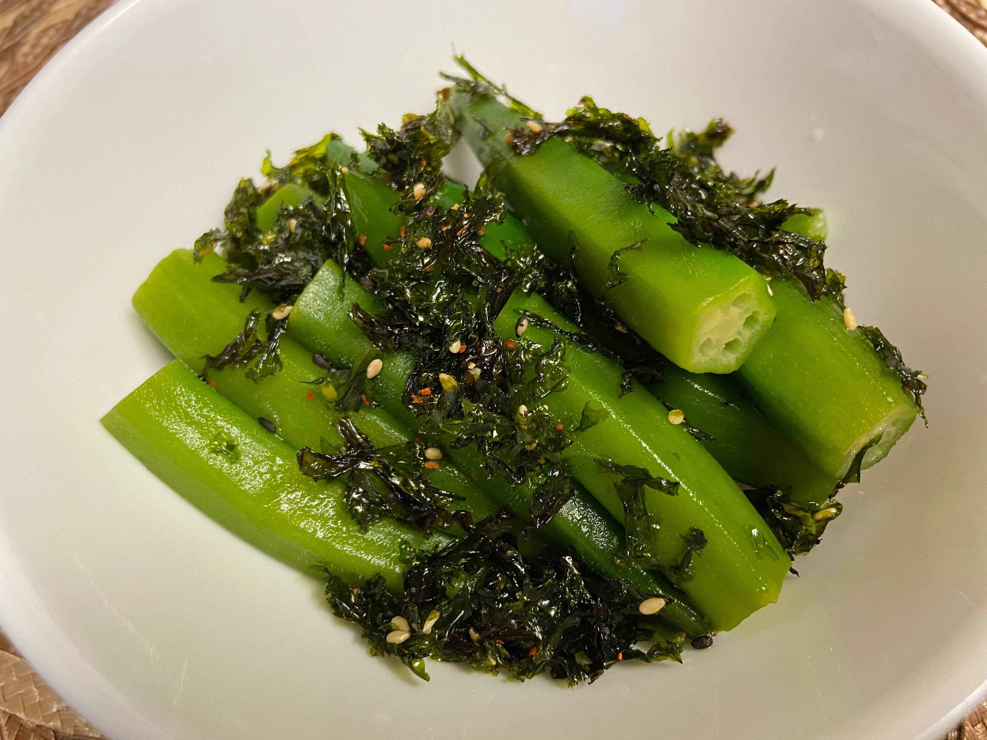 業務スーパーの冷凍オクラを使用した、簡単副菜メニューを紹介します。