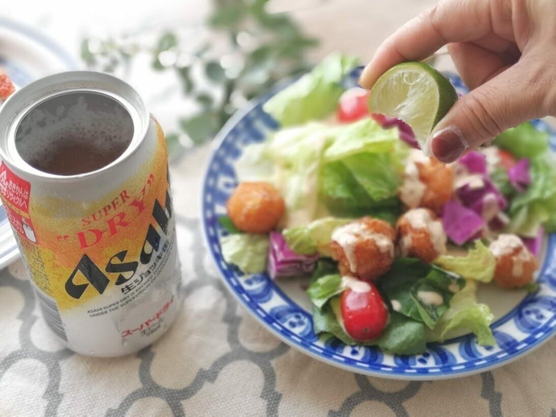 揚げ物とビールはまさにテッパンの組み合わせですが、そこへフレッシュなサラダとドレッシングのピリ辛感がアクセントになり、サラダ一口、ビールゴクゴク、サラダ…ビール…と無限ループに突入です。