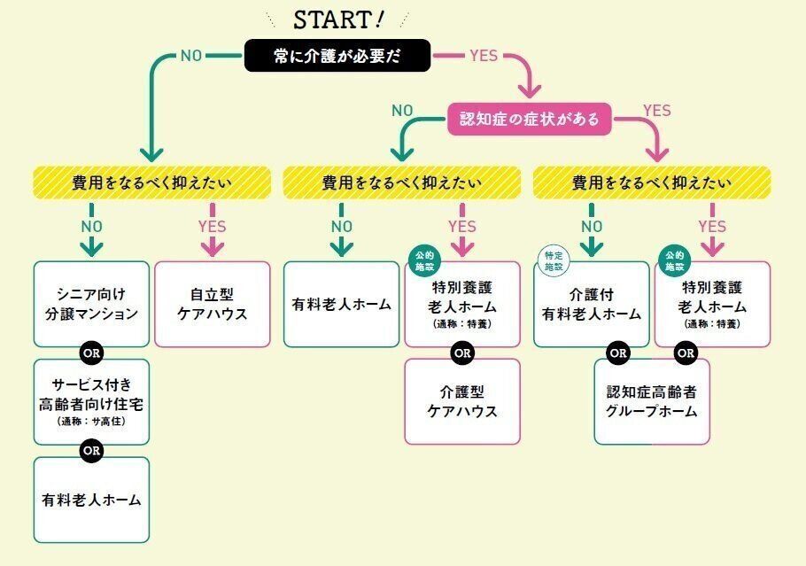 年をとって日々の家事が負担になったり、健康管理や自宅の管理が不安になったりしたら、有料老人ホームをはじめとした"高齢者向けの施設"で暮らすという選択肢があります。