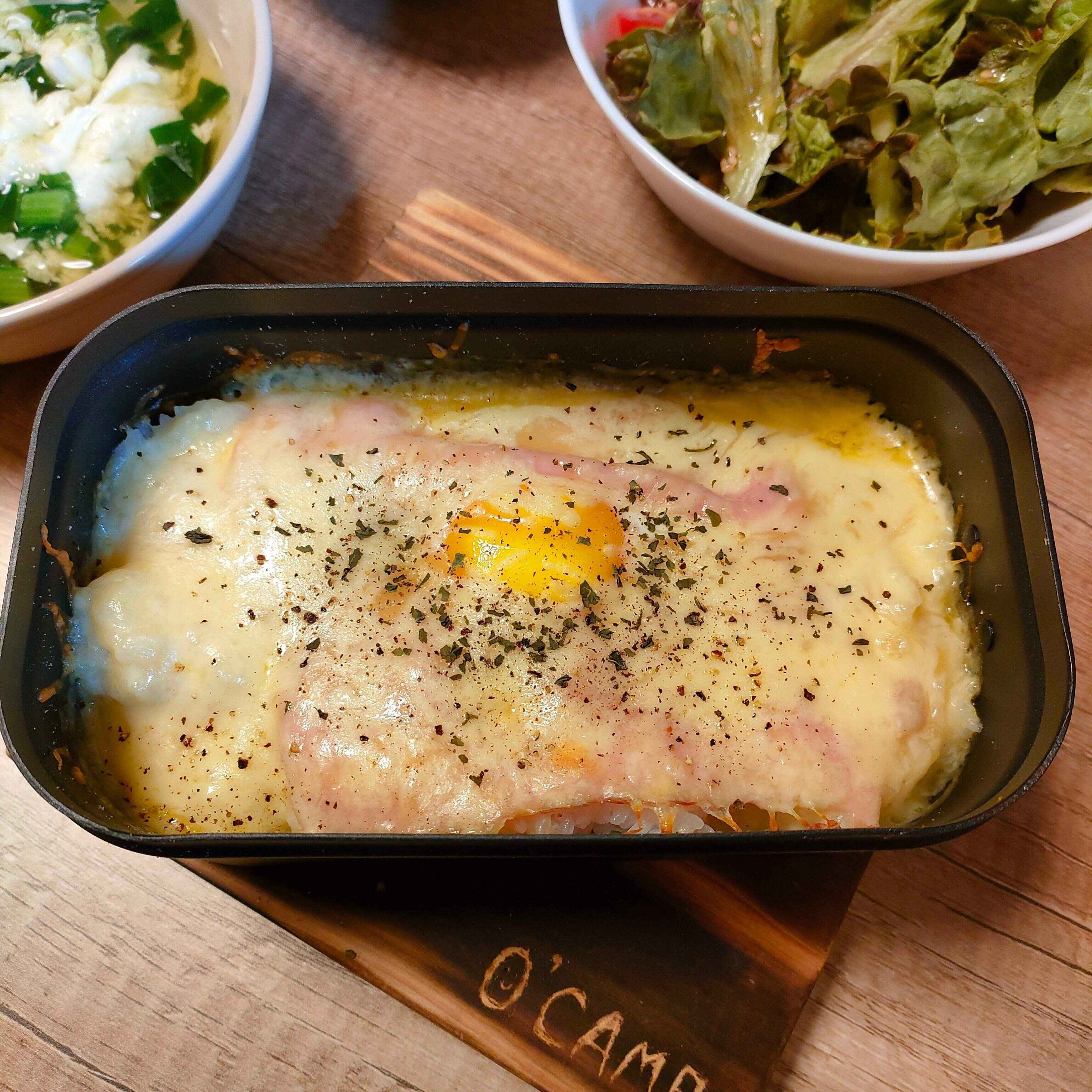 目玉焼きを焼いたり、お肉を焼いたりできるので、両方同時進行でキャンプめしが作れますよ。
