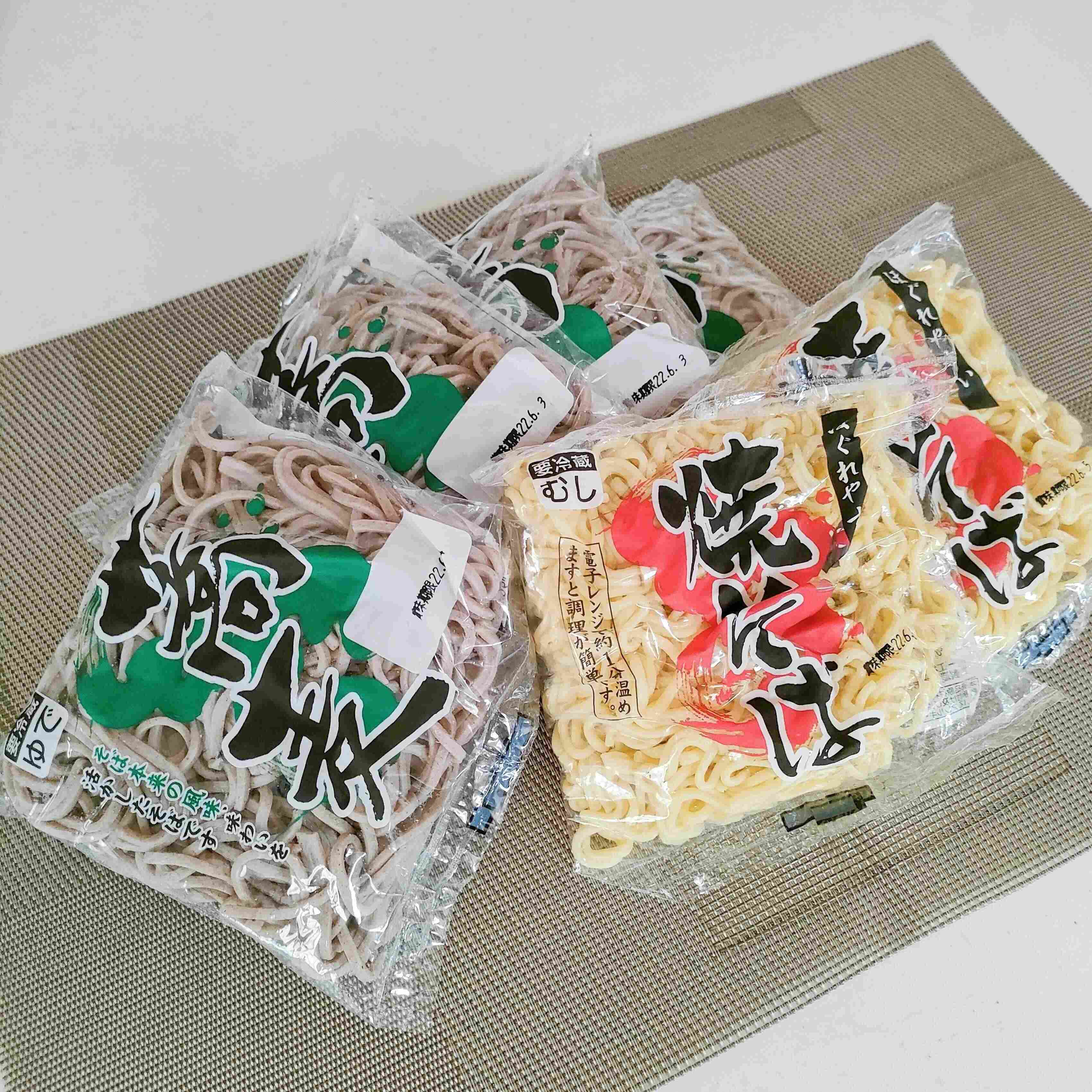 やきそば、そば、きしめん、稲庭風うどんなど種類も豊富。なんといっても価格に驚きますよね。賞味期限は購入日から1週間ほど。買いだめアイテムとしても便利!