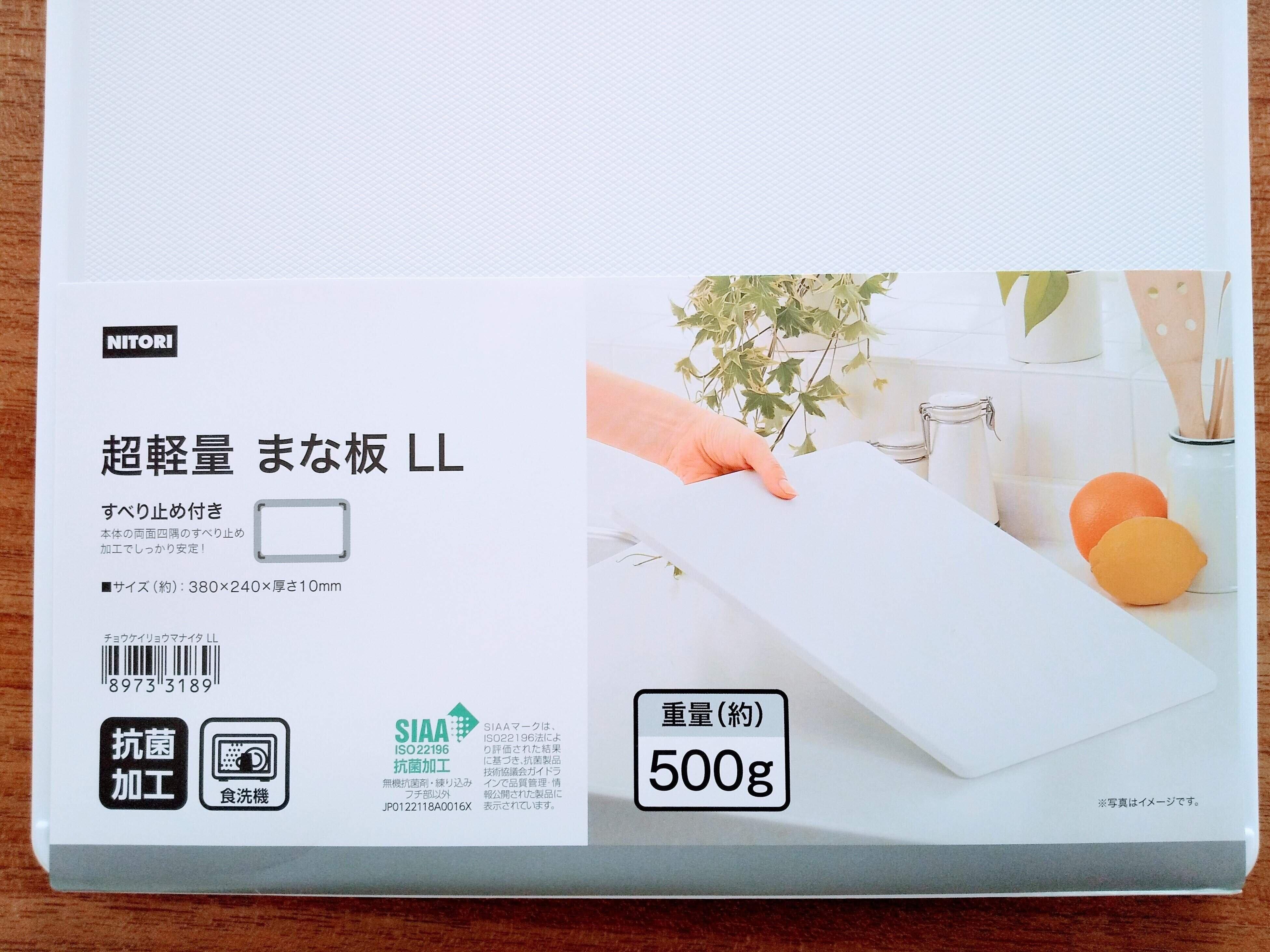 ニトリの「超軽量まな板LL」は999円。名前のとおり、重さ500gと超軽量なのが最大のポイントです。