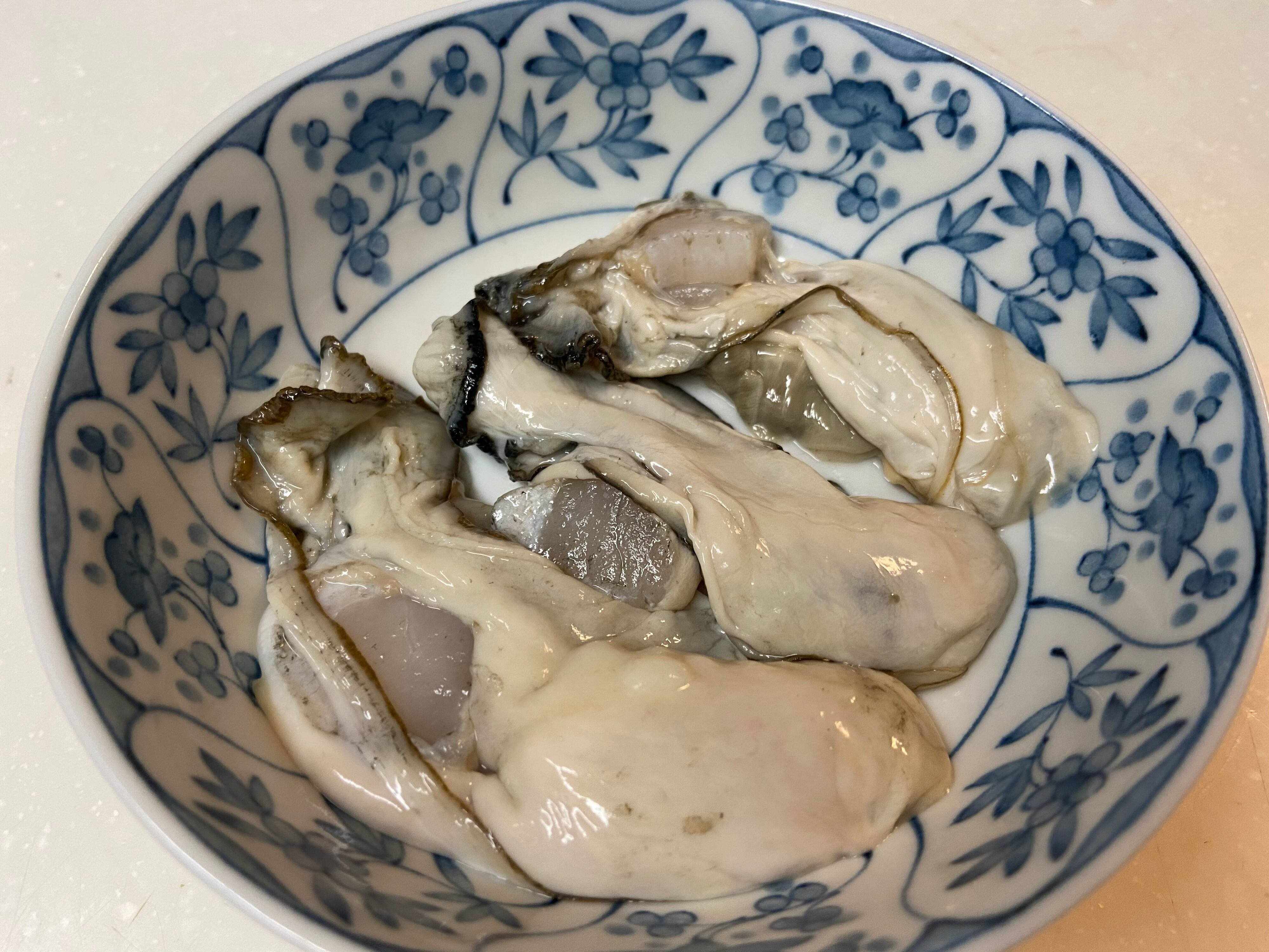私は片栗粉を全体にまぶしてサッと水洗いしています。我が家の子どもたちはまだ小さく、万が一牡蠣の殻の小さな破片が入っていると危ないので、ひだの部分までしっかり、でも力は入れずにやさしく丁寧に洗い流します。これで汚れも落ち、臭みなども残りません。