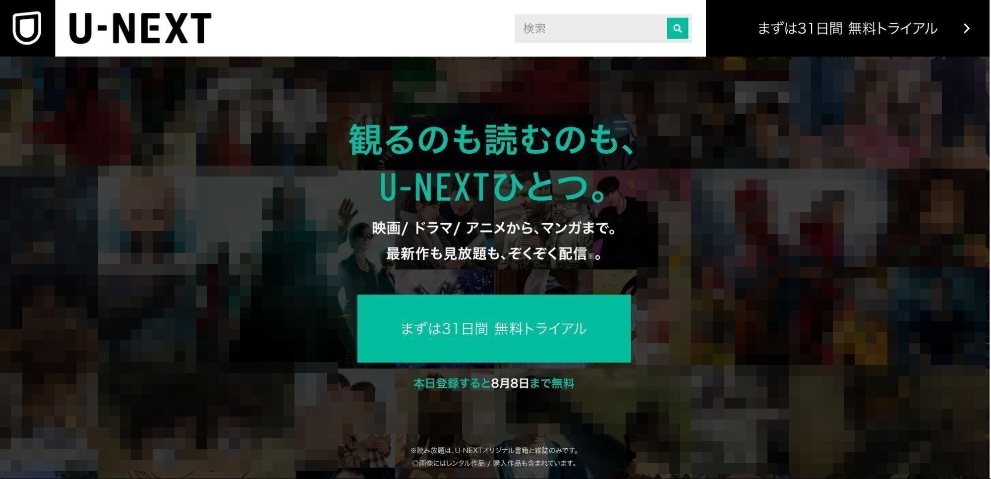 初回契約なら31日間は無料で動画見放題のU-NEXT。