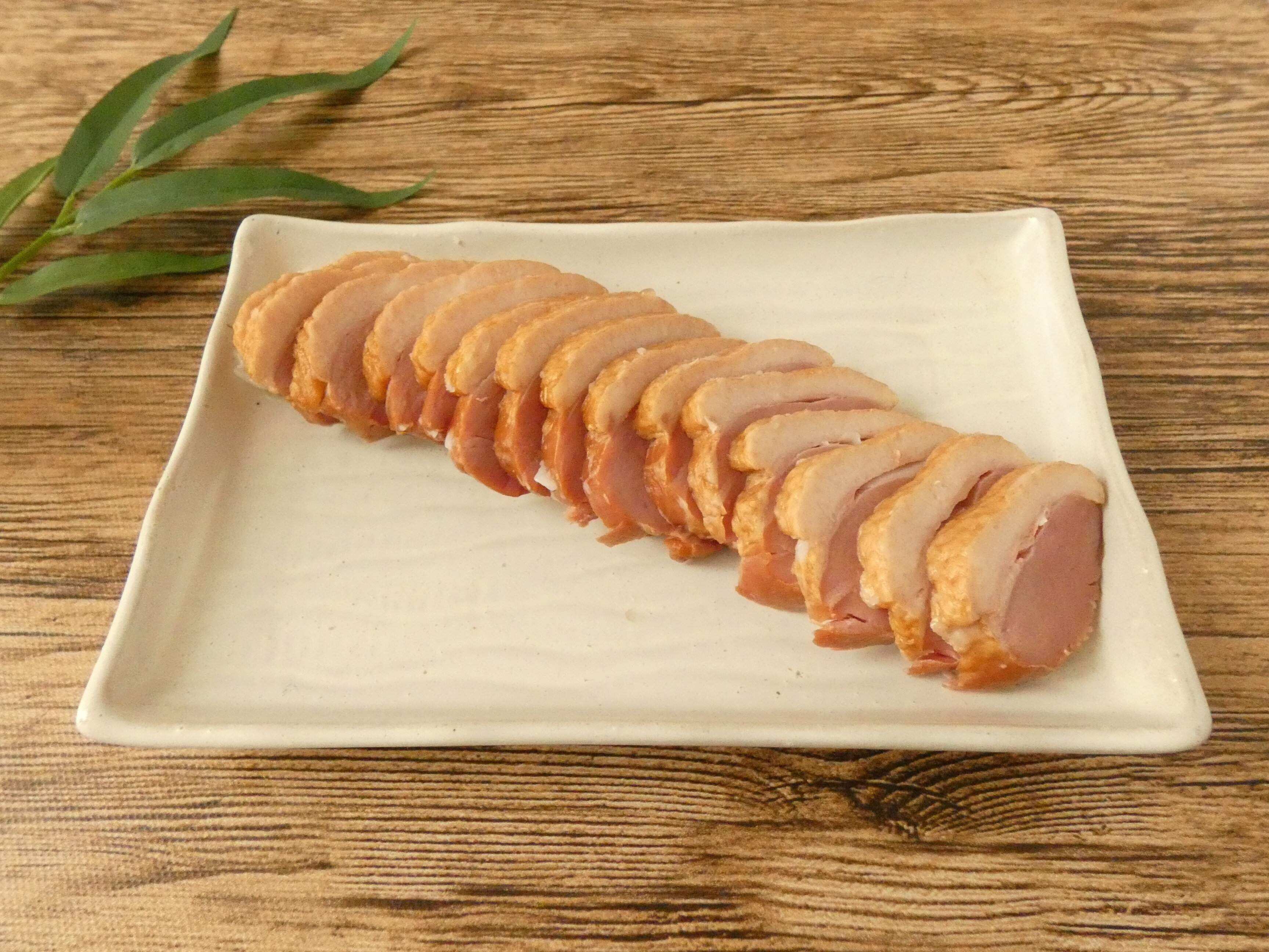 パッケージを開けると燻製のいい香りがいっぱいに広がります。味つけしてあるので、薄くスライスして盛り付けるだけで簡単おつまみに。薄くスライスして使う場合は半解凍した状態で切るのがオススメです。