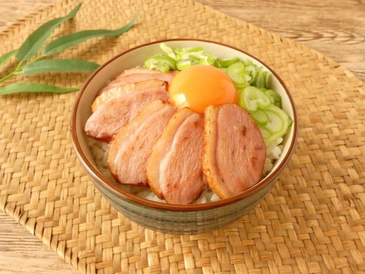 合鴨ロースをフライパンで焼いて、たっぷりの葱と卵黄を乗せただけの鴨丼もオススメ。葱との相性バッチリで、卵黄が混ざるとまろやかになります。合鴨ロースを焼くときは、焼きすぎると脂がどんどん溶けてしまうので、さっと炙る程度にするといいです。