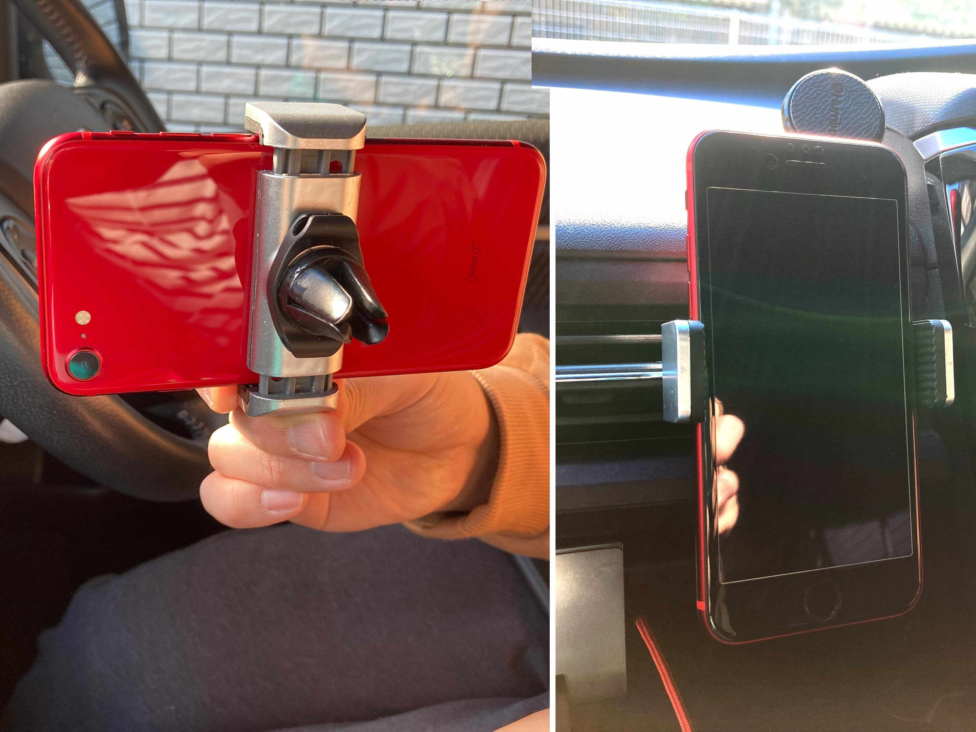 車のエアコン吹き出し口にサッと差し込んで簡単に使用できる「スマートフォンホルダー」が便利!