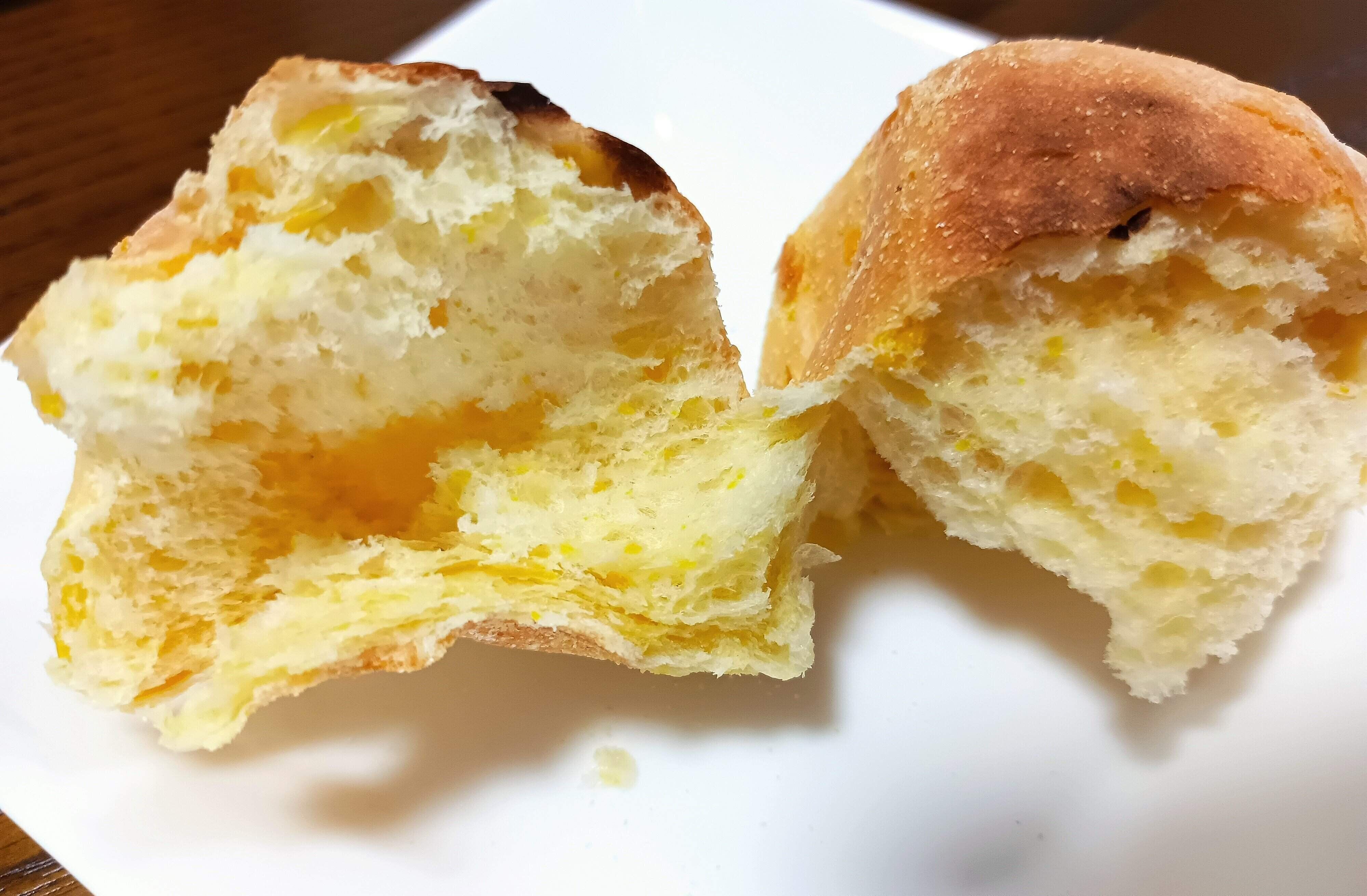 袋を開封すると早速コーンのいい香りがします。大きさは、ディナーロールと同じくらいの大きさです。
