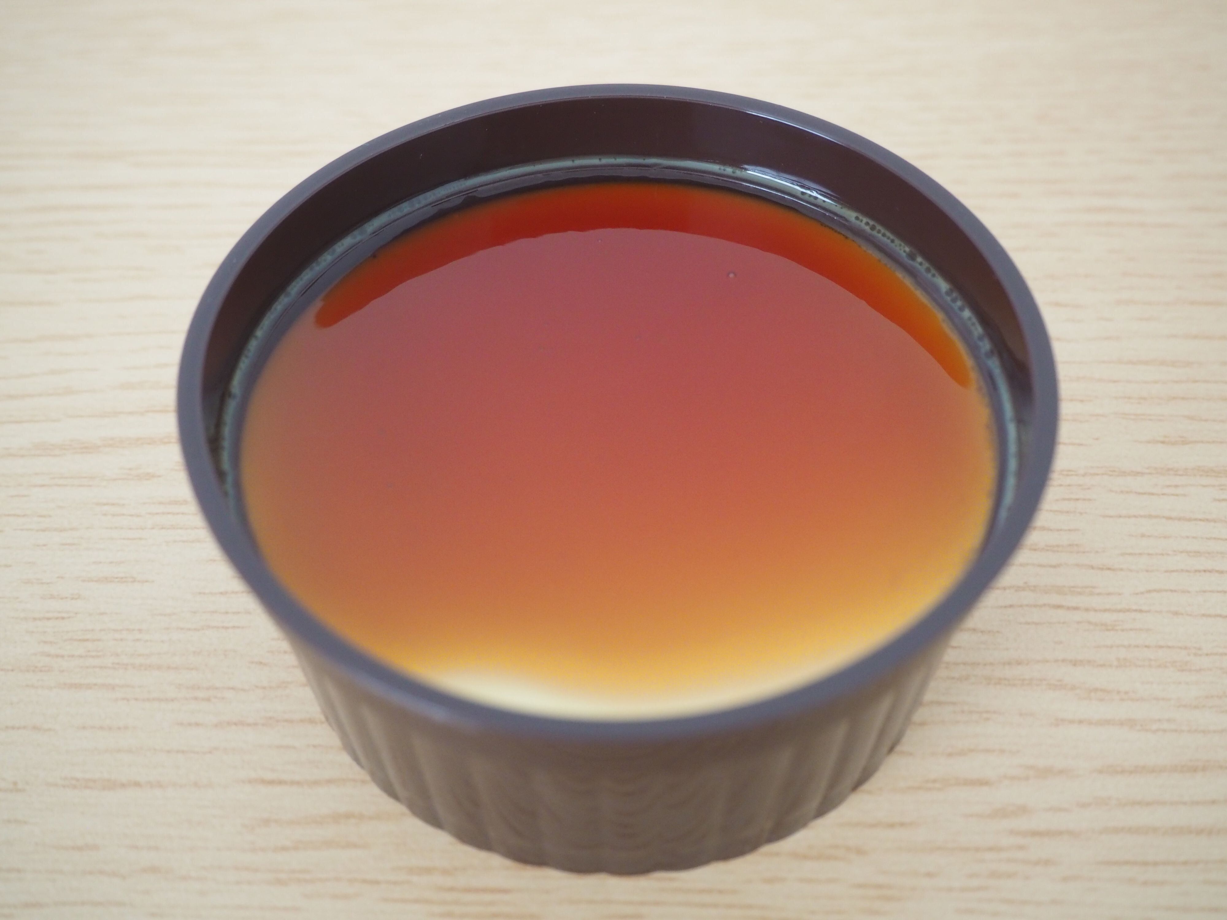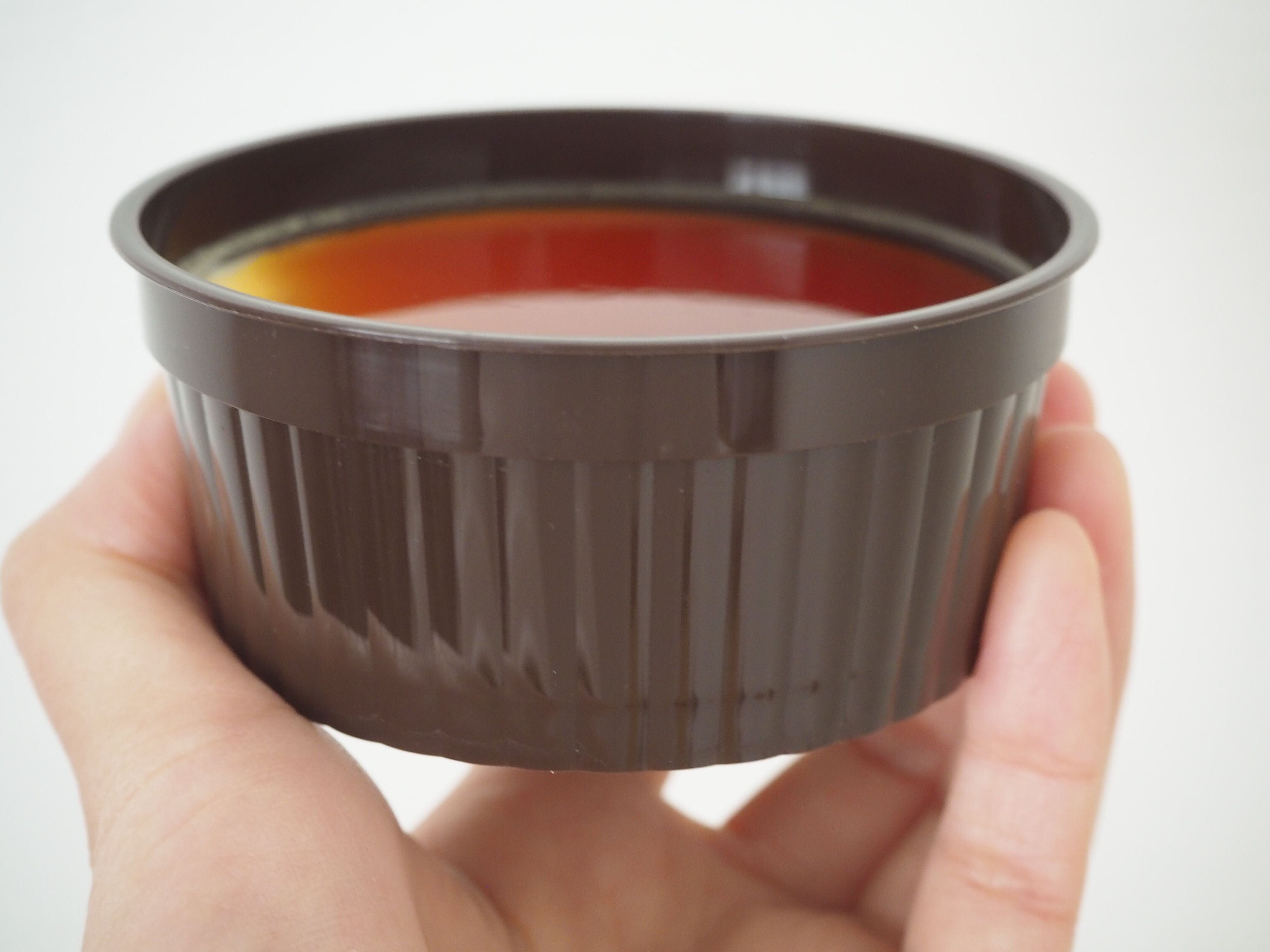 早速、開封してみましょう。こちらの商品はカラメルソースが上にかかっているタイプ。ほぼ固まっているので、こぼれる心配は少なそうです。
